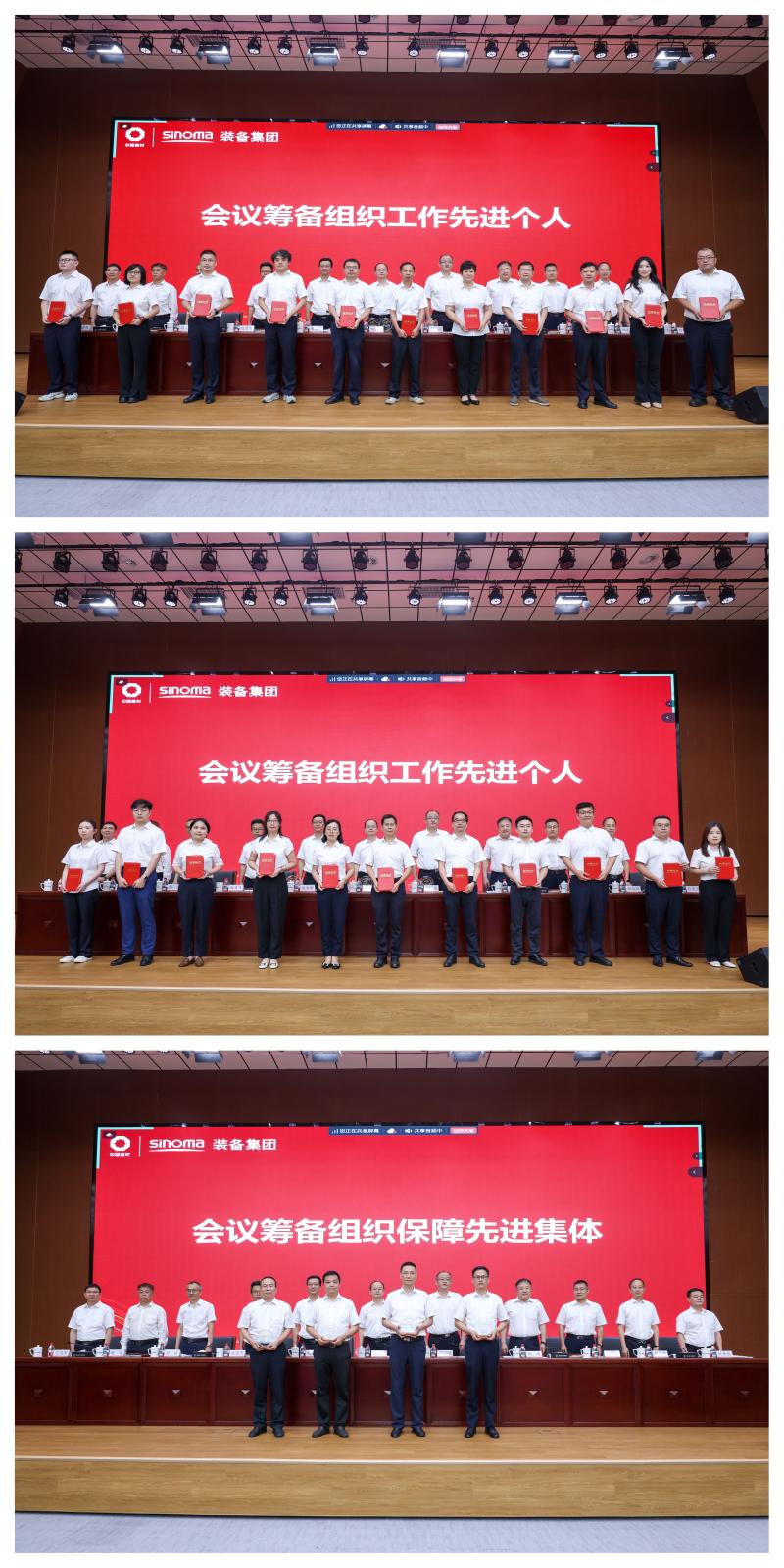 裝備集團(tuán)黨委副書記殷召飛宣讀《關(guān)于表彰中材國際第三屆水泥綠色智能發(fā)展大會會議籌備組織工作先進(jìn)個人及會議籌備組織保障先進(jìn)集體的決定》,公司領(lǐng)導(dǎo)班子為獲獎代表頒獎。