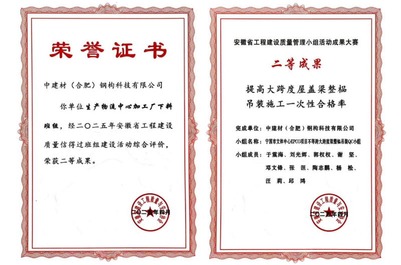 近日,在安徽省工程建設(shè)質(zhì)量管理小組活動(dòng)成果大賽上,中建材鋼構(gòu)公司憑借扎實(shí)的技術(shù)功底、卓越的質(zhì)量管理水平和持續(xù)的創(chuàng)新精神,一舉斬獲10項(xiàng)優(yōu)秀成果大獎(jiǎng)!其中包括2項(xiàng)二等獎(jiǎng)、8項(xiàng)三等獎(jiǎng),獲獎(jiǎng)數(shù)量和質(zhì)量均位居行業(yè)前列,充分展現(xiàn)了中建材鋼構(gòu)公司在工程建設(shè)領(lǐng)域強(qiáng)大的綜合實(shí)力和核心競爭力。